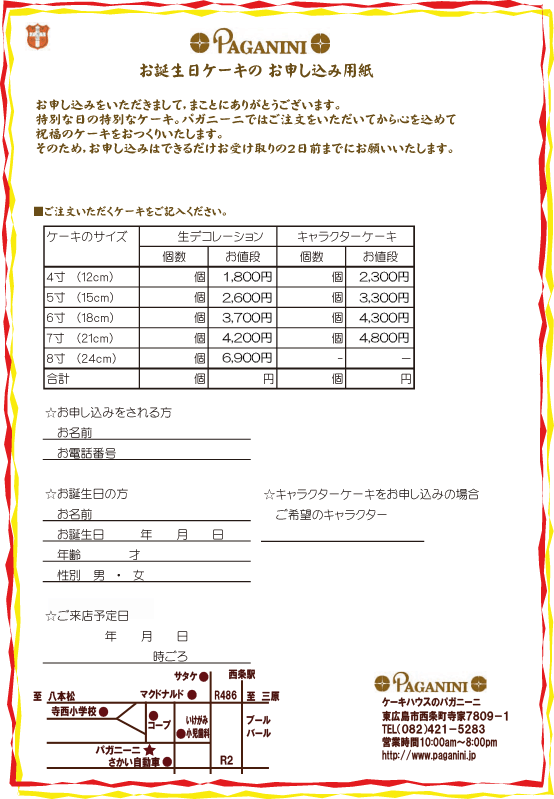 商品のご注文・ご予約は、店頭か、お電話、オンラインショップでどうぞ (082)421−5283 営業時間10:00am〜8:00pm